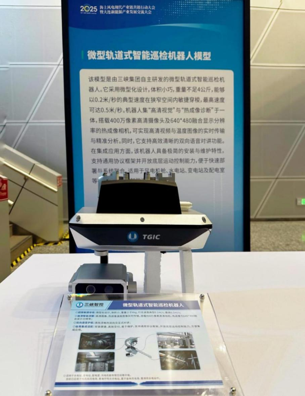 作為大會“先進技術(shù)裝備”展示重點企業(yè),三峽智控微型軌道式智能巡檢機器人,針對海上風電設(shè)備運維痛點打造,其小巧靈活、功能全面的優(yōu)勢,高度適配風電機艙、變電站等復雜狹窄場景。依托高清攝像與熱成像技術(shù),機器人可實時捕捉設(shè)備運行狀態(tài),精準識別溫度異常、部件損耗等故障,搭配雙向語音對講功能,實現(xiàn)“巡檢-預警-溝通”一體化操作。憑借安裝維護便捷、兼容通用協(xié)議等特點,具備快速融入現(xiàn)有運維體系的能力,能顯著提升巡檢效率與安全保障水平。